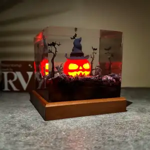 Add a magical glow to your Halloween setup with these Handmade Pumpkin Halloween Lights. Crafted from epoxy resin and wood, these night lights feature a smiling pumpkin that embodies the festive spirit of Halloween. With 16 different color options, you can set the mood just right, whether it’s a spooky movie night or a Halloween party. Plus, they come with a remote for easy control!